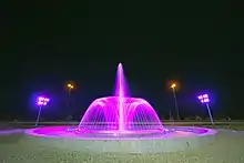 برای نمایش فوارهها در شب از چراغهایی در زیر محل ریزش آب استفاده میکنند که بایستی با اصول نورپردازی در آب مطابقت داشته باشد. تابش نور از پایین به بالا و تنظیم میزان آن، باعث انعکاس حرکات آب در محوطه اطراف و روی شاخ و برگ گیاهان میشود و زیبایی خاصی به محیط میبخشد. در صورت وجود گیاهان آبزی یا ماهی در استخر، باید در نصب فوارهها دقت شود. برای نیلوفرهای آبی تلاطم سنگین آب مضر خواهد بود. اما اکسیژن فراوان حاصل از آب فوارههای بلند برای ماهیها مفید و مطلوب است.