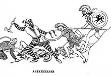 آرتافرنه در نبرد ماراتون با یونانیان مبارزه می کند، در ۴۹۰ پ.م.