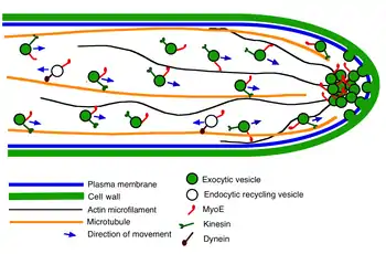 - Steinberg, G. (2007). "Hyphal growth: a tale of motors, lipids, and the Spitzenkörper". Eukaryotic Cell. 6 (3): 351–360. doi:10.1128/EC.00381-06. PMC 1828937. PMID 17259546.
