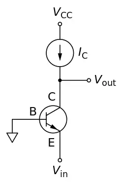 یک ترانزیستور با پیوند بیس مشترک. منبع جریان Ic یک بار فعال را نمایش میدهد.