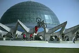 چادری ۷۰۵ متری، سکوهایی سیمانی و محوطه وسیع روبروی آن، آمفی تئاتر آب و آتش را تشکیل می دهند. این آمفی تئاتر، محوطه بازی است که با هدف برگزاری مراسم های مذهبی و آیینی، جشن ها و تئاترهای خیابانی ساخته شده است.[2]