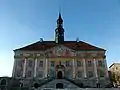 این ساختمان که در سال ۱۶۶۸ شروع به ساخت و در سال ۱۶۷۱ ساخت آن به پایان رسیده[2] در میدان رائکویا (میدان تالار شهر) در کنار کالج ناروا دانشگاه تارتو قرار دارد.