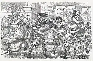 در داستانهای کهن آمدهاست که رومولوس برای اینکه ساکنان رم را صاحب زن کند، مسابقاتی ترتیب میداد و سابینها و طوایف دیگر را به آن مسابقات دعوت میکرد. در طی این مسابقات، رومیان زنان سابینی را به زور نگاه میداشتند و مردان را تار و مار میکردند. تیتوس تایتوس، پادشاه طایفهٔ سابینی کوریایی، به رم اعلان جنگ داد و به شهر تاخت. تارپیا، دختر یکی از سرداران رومی که پاسدار قلعهای به روی تپهٔ کاپیتولینوس بود، [به خاطر عشق به سردار سپاه سابین]، دروازه قلعه را به روی مهاجمان گشود. رومیان او را به سزای این خیانت، میان سپرهای خود خرد کردند، و نسلهای بعدی به صخرهای که محکومان را از آنجا به پرتگاه فرو میانداختند، نام صخره تارپیایی دادند. چون سپاهیان تاتیوس، به نزدیک پالاتینوس رسیدند، زنان سابینی که اسارت را خوش نداشتند، به این بهانه اسباب ترک جنگ را فراهم کردند که: اگر کوریاییان جنگ را ببرند، آنان شوهران خویش را از دست خواهند داد، و اگر ببازند، پدرانشان را. بدین ترتیب، رومولوس، تاتیوس را برانگیخت که هردو با هم حکومت کنند و، با پیوستن طایفهٔ خود به لاتینها، مملکت واحدی را پدیدآورند؛ از آن پس آزادگان رومی را، کوریایی یا کویریایی نامیدند. این افسانه شاید تا حدی به حقیقت نزدیک باشد. همچنین ممکن است که رومیان، به انگیزهٔ میهنپرستی، آن را برای پرده پوشی غلبه سابینها بر رم، ساخته باشند.[2]