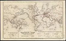 نخستین کابل دائمی تلگراف گذرنده از زیر اقیانوس اطلس در سال ۱۸۶۶ ارتباط میان قارههای آمریکا و اروپا را برقرار کرد. این طرح با حمایت دولتهای ایالات متحده آمریکا و بریتانیا و افرادی چون سایرس وست فیلد، ساموئل مورس، ویلیام تامسون و آیزامبارد کینگدام برونل محقق شد.[2]