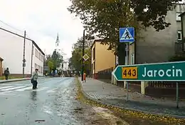 ![]() Street in Tuliszków with Church of Saint Vitalis in the far background | |