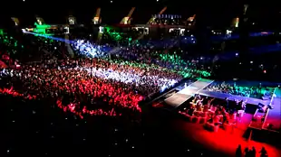 در آن روزها، اشغال ایران در جنگ جهانی دوم بهدست نیروهای متفقین، انگیزهای شد تا روحالله خالقی تحت تأثیر اوضاع آن زمان،[45] یکی از مشهورترین آثار خود را آهنگسازی کند.[46] او در شهریور سال ۱۳۲۳ بر روی شعری از حسین گلگلاب، سرود «ای ایران» را برای صدای غلامحسین بنان و گروه کًر ساخت.[47] این اثر را سرود ملی غیررسمی ایرانیان دانستهاند.[48] در همین زمان انجمن موسیقی ملی نیز با تلاشهای خالقی شکل گرفت و در نخستین برنامهٔ رسمی این انجمن در مهر ۱۳۲۳ ه. ش، پس از سخنرانی علینقی وزیری، سرود «ای ایران» برای نخستینبار به اجرا درآمد و به قدری مورد توجه قرار گرفت که در همان کنسرت سه بار تکرار شد.[4] این ارکستر در طول فعالیتهای خود، برنامههای متعددی در تهران و چند شهر ایران برگزار کرد.