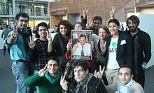 ![]() مائده، دختر عبدالفتاح سلطانی، در جریان همایش «درون ایران» در برلین در تلاش برای جلب توجه به وضعیت پدرش نوامبر ۲۰۱۱ | |