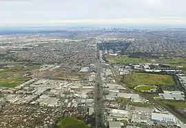 ![]() Aerial view looking south-east, from above the Sydney Road / Western Ring Road | |||||||||||||||