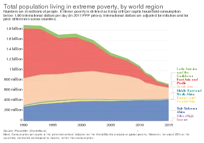 کل جمعیتی که در فقر شدید زندگی میکنند، بر اساس منطقه جهانی ۱۹۸۷ تا ۲۰۱۳.