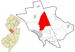 ![]() Lawrence Township highlighted in Mercer County. Inset map: Mercer County highlighted in the State of New Jersey. | |