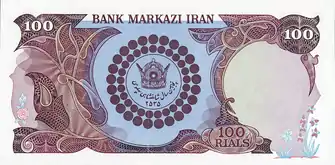 نمادهای به کار رفته در اسکناسها در دوره شاهنشاهی پهلوی افزون بر نماد شیر و خورشید و نگاره پادشاه، نگارههایی از تخت جمشید، آرامگاه دانیال نبی، کوه دماوند، رشته کوههای البرز، کاخ تچر، پل قدیم دزفول، طاق بستان، سنگنگاره پیشکش آوران، نماد نوروز زرتشتیان، مهر سلطنتی داریوش کبیر، عالی قاپو، داریوش بزرگ، پل الله وردی خان، ا، پالایشگاه آبادان، ساختمان بانک ملی ایران، تونل و سد کوهرنگ، تاج پهلوی، آرامگاه حافظ، جام مارلیک، هتل رامسر، سد کرج، پل ورسک و … میباشد.