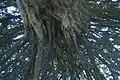 Underside of the famous yew in churchyard of church of S. Peter & S. Paul, Harlington, Middlesex, 2014.
