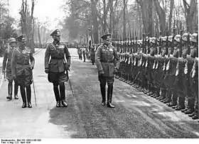 ژنرال زکت در هفتادمین زادروز خود از نیروهایش سان میبیند. ورنر فون بلومبرگ در وسط و گرد فون روندشتت در سمت چپ دیده میشوند."بایستی نیرومند شویم، به محض اینکه صاحب قدرت شدیم طبیعتاً هر چه که از دست دادهایم را بازمیگردانیم."