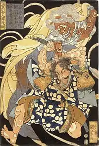وقتی پاسداری از دروازه راشومون در کیوتو به تسونا واگذار شد، ابلیسی به نام ایباراکی به نابودی او برخاست. در سحرگاه یک شب، تسونا ناگهان فشار دستی غیرزمینی را بر شانهٔ خویش احساس کرد، پس به سرعت برگشت و دست را با یک ضربهٔ شمشیر قطع نمود. دست پشمالود ایباراکی بر جای ماند و خود او، به سرعت از مهلکه گریخت.