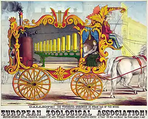 جوشوا سی استودارد (Joshua C. Stoddard) اهل ووستر، ماساچوست در تاریخ ۹ اکتبر ۱۸۵۵ کالیوپ را اختراع کرد.[2][3] اگرچه طراحی او تقلیدی از ایدههای قبلی مانند شیپور بخار است که در ۱۸۳۲ طراحی شده و بعداً به عنوان سوت قطار شهرت یافت.