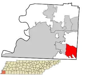 ![]() Location in شهرستان شلبی، تنسی and state of تنسی. | |