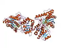 - Mulichak AM, Lu W, Losey HC, Walsh CT, Garavito RM (May 2004). "Crystal structure of vancosaminyltransferase GtfD from the vancomycin biosynthetic pathway: interactions with acceptor and nucleotide ligands". Biochemistry. 43 (18): 5170–5180. doi:10.1021/bi036130c. PMID 15122882.