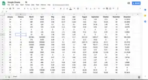![]() نمونه ای صفحه گسترده گوگل شیتز | |