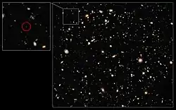 - "Dim galaxy is most distant object yet found". New Scientist. Retrieved 2010-10-21.